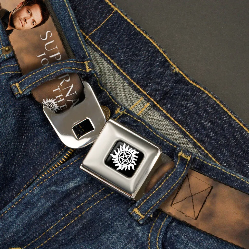 Winchester Logo Full Color Black White Seatbelt Belt – Dean, Sam & Castiel SUPERNATURAL JOIN THE HUNT Webbing