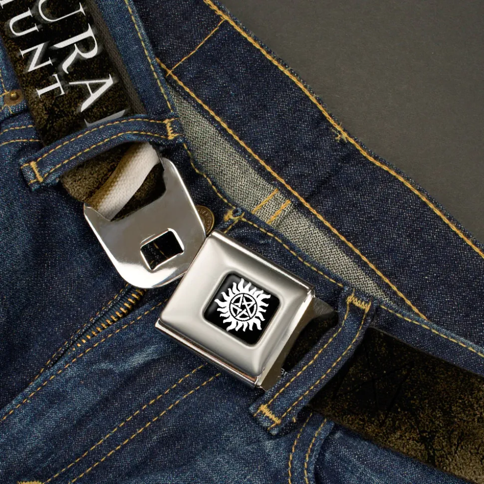 Winchester Logo Full Color Black White Seatbelt Belt – SUPERNATURAL-JOIN THE HUNT/White Snake Webbing