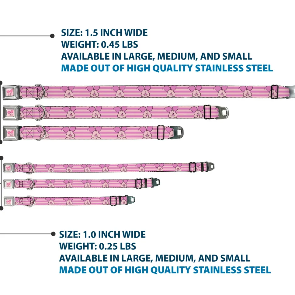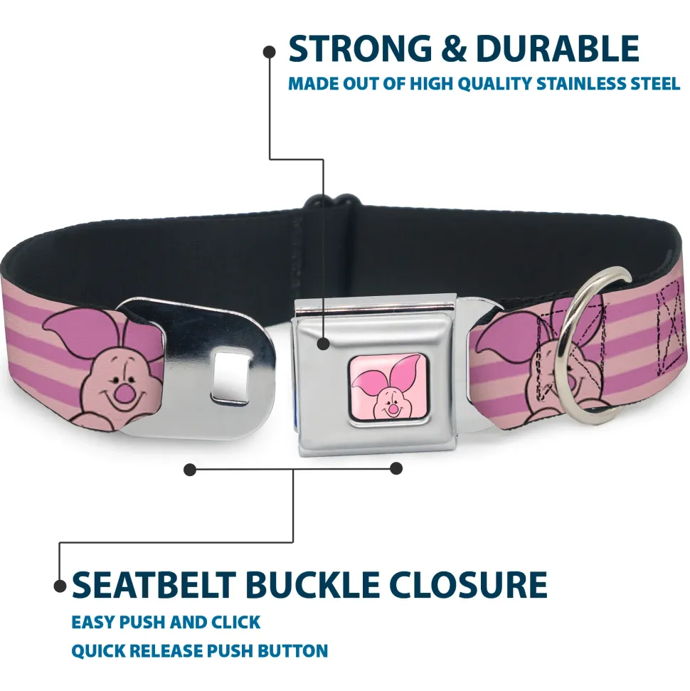 Winnie the Pooh Piglet Expression Close-Up Pink Seatbelt Buckle Collar – Winnie the Pooh Piglet Expression Close-Up Stripe Pinks