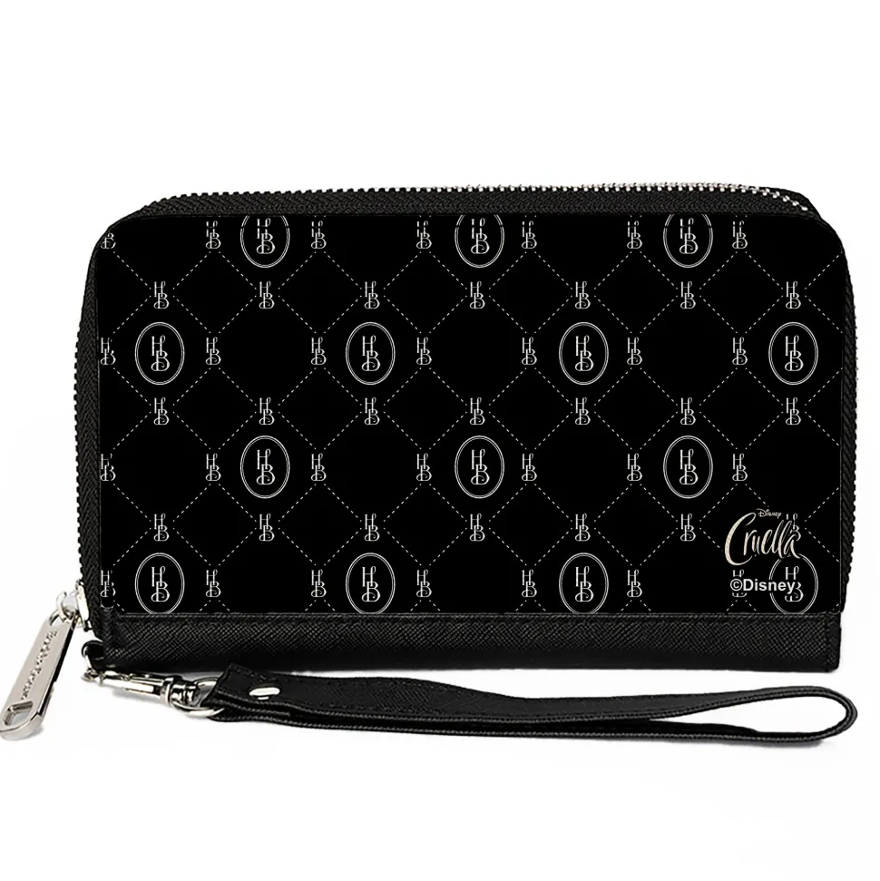 Women's PU Zip Around Wallet Rectangle - Cruella House of Baroness HB Monogram Black White