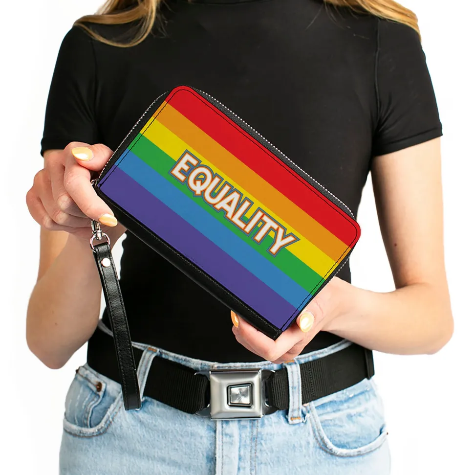 Women's PU Zip Around Wallet Rectangle – EQUALITY Stripe Rainbow White