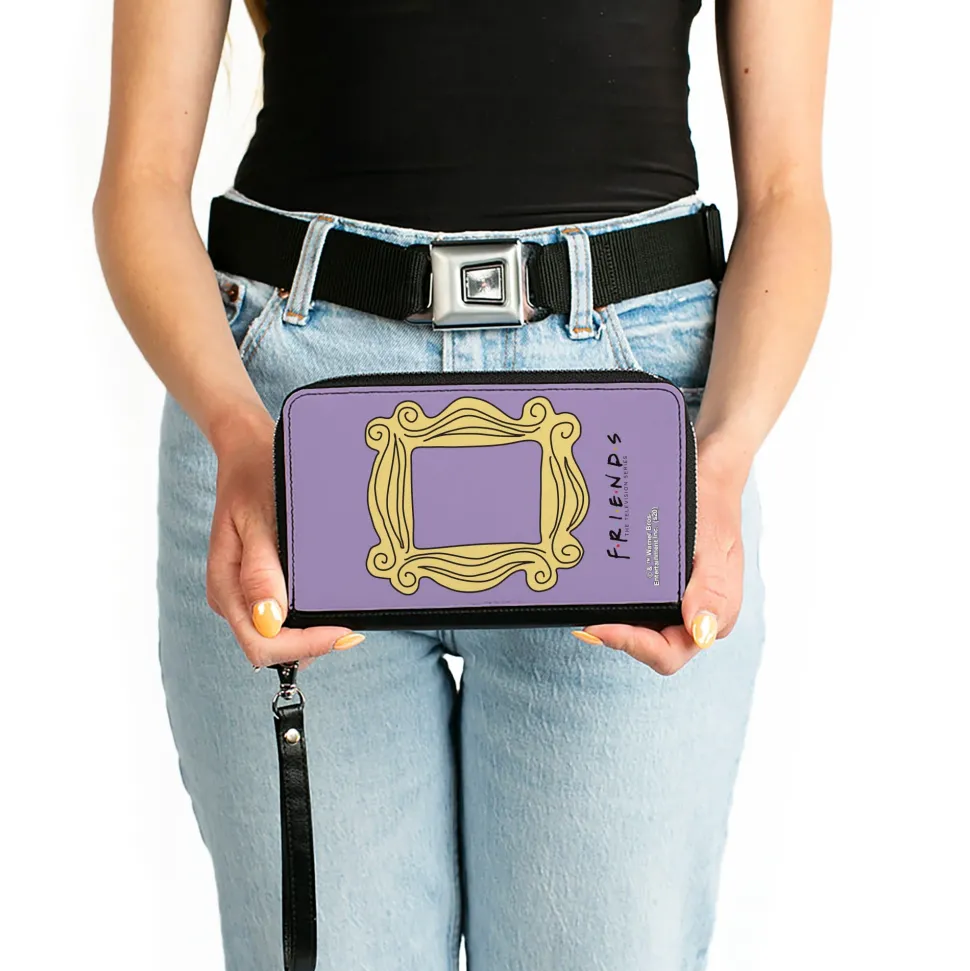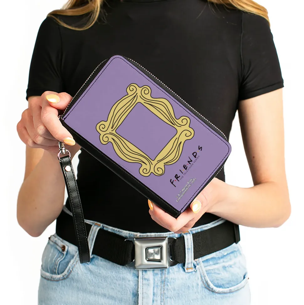 You’re going to love this wallet! Stylish and sleek this zip around wallet is made from premium vegan leather. It measures 7.5×4.5×1.0 Inches and features 2 billfolds, 6 card slots, 1 coin zipper, 1 windowed ID holder slot and a detachable wristlet strap for easy carrying. This wallet is spacious enough to carry large smartphones such as the iPhone 8 Plus, iPhone 11 Max. Galaxy Note 10 Plus and more! The gorgeous artwork is applied using the latest printing technology so it will hold up well over time. This product is Made in USA by Buckle-Down Inc. and Officially Licensed by Friends.
