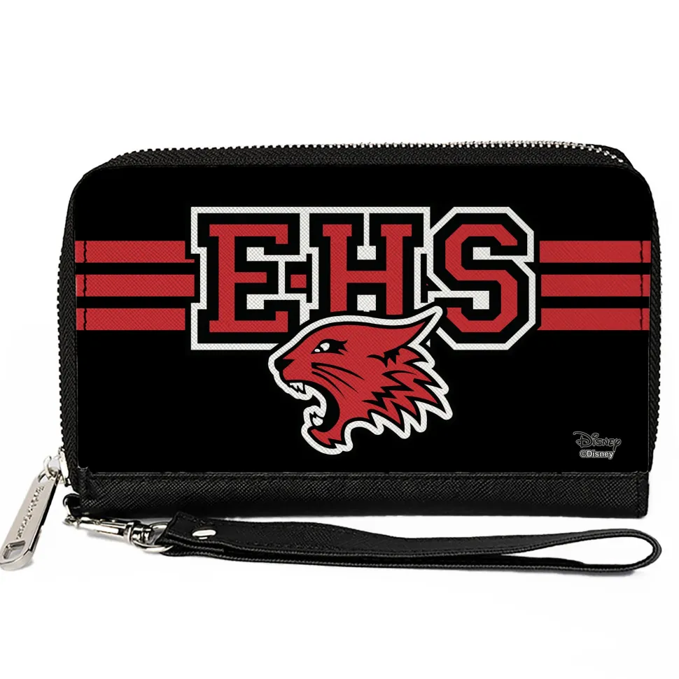 Women's PU Zip Around Wallet Rectangle - High School Musical East High School Wildcats Logo Stripe Black Red White