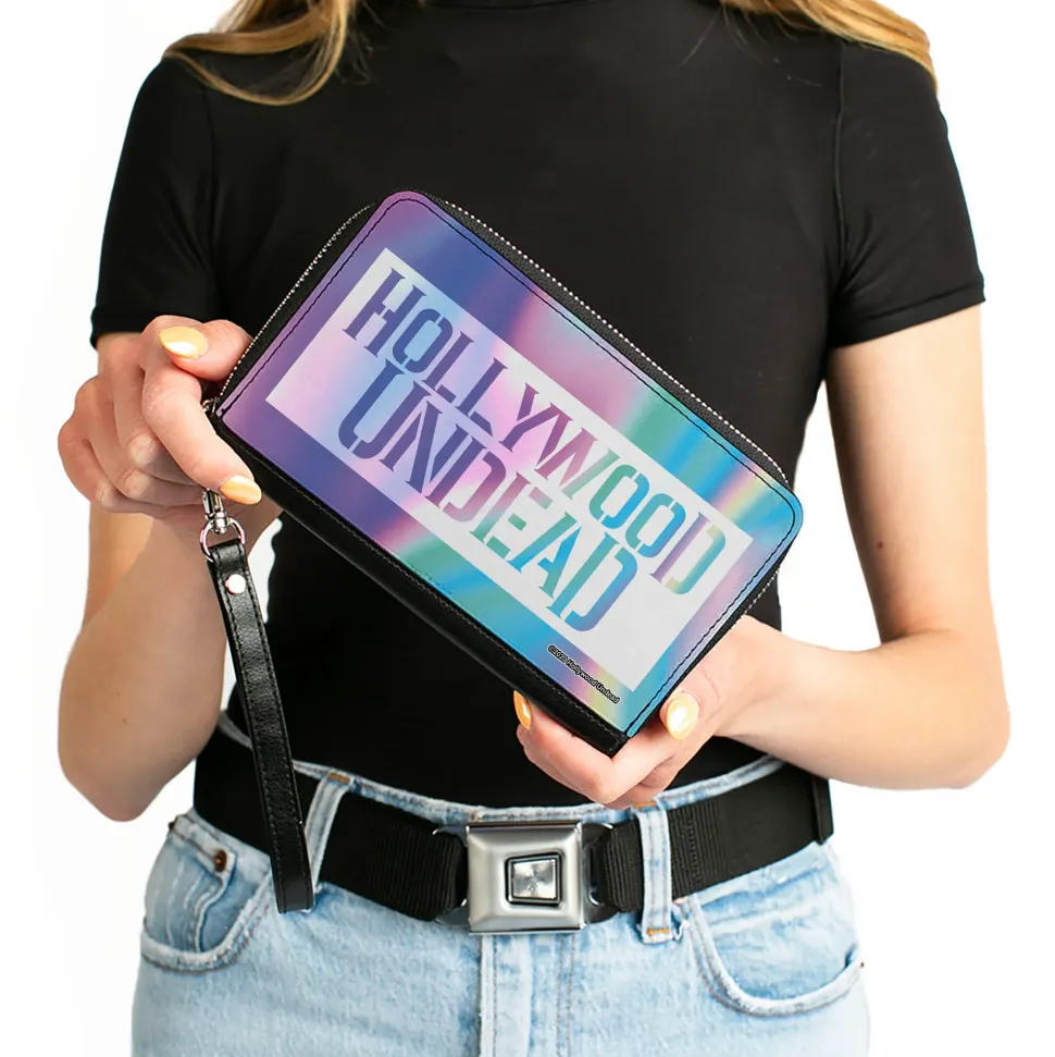 Women's PU Zip Around Wallet Rectangle - HOLLYWOOD UNDEAD Text Logo Block Aura White