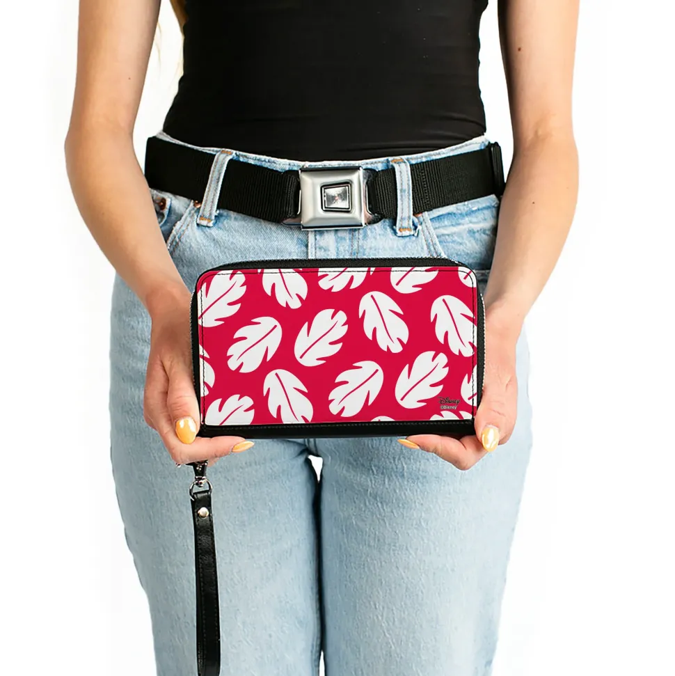 Women's PU Zip Around Wallet Rectangle - Lilo & Stitch Bounding Lilo Dress Leaves Red White