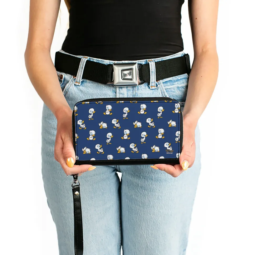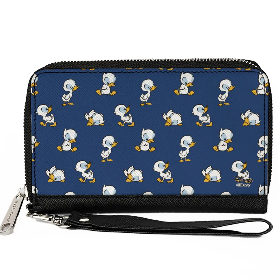 Women's PU Zip Around Wallet Rectangle - Lilo & Stitch Duckling Poses Scattered Blue