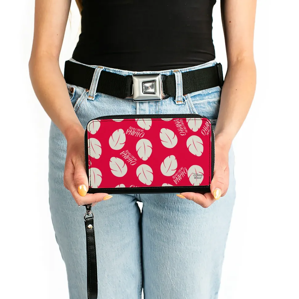 Women's PU Zip Around Wallet Rectangle - Lilo & Stitch OHANA MEANS FAMILY Bounding Lilo Dress Leaves Red Ivory