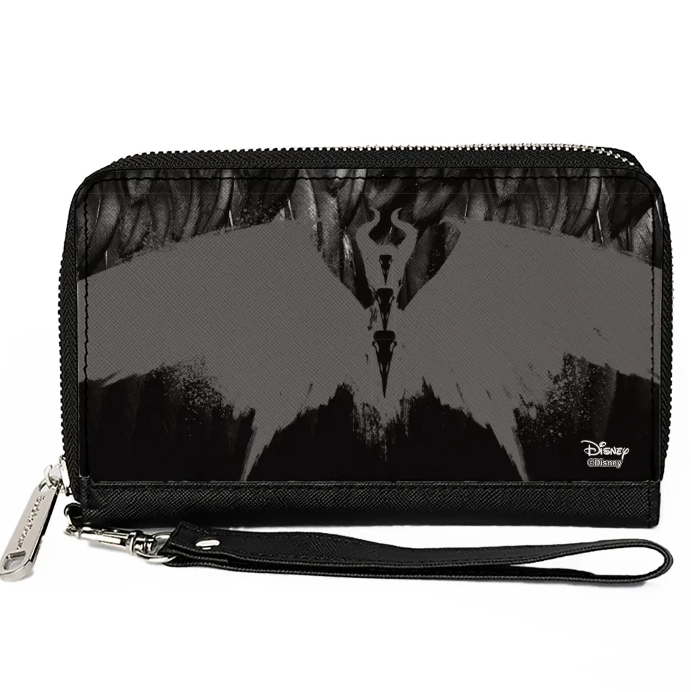 Women's PU Zip Around Wallet Rectangle – Maleficent Phoenix Silhouette Black Grays
