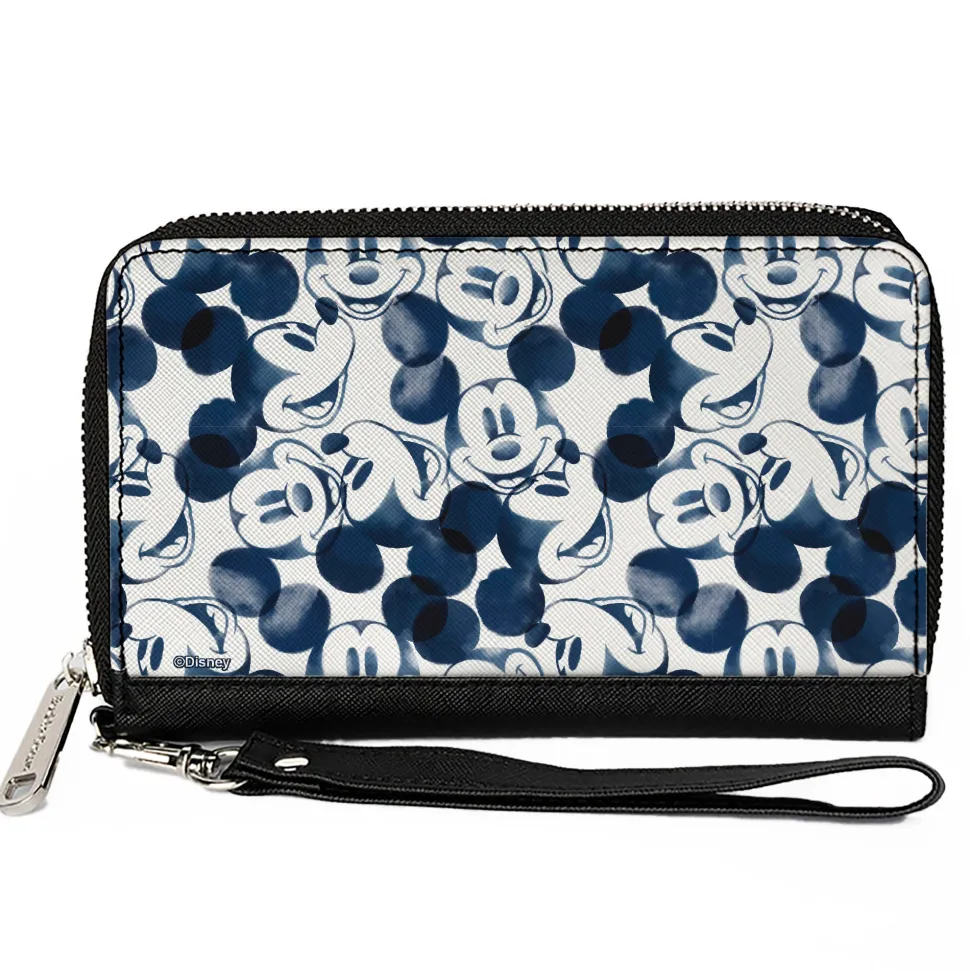 Women's PU Zip Around Wallet Rectangle - Mickey Mouse Expression Impressions Stacked Blues