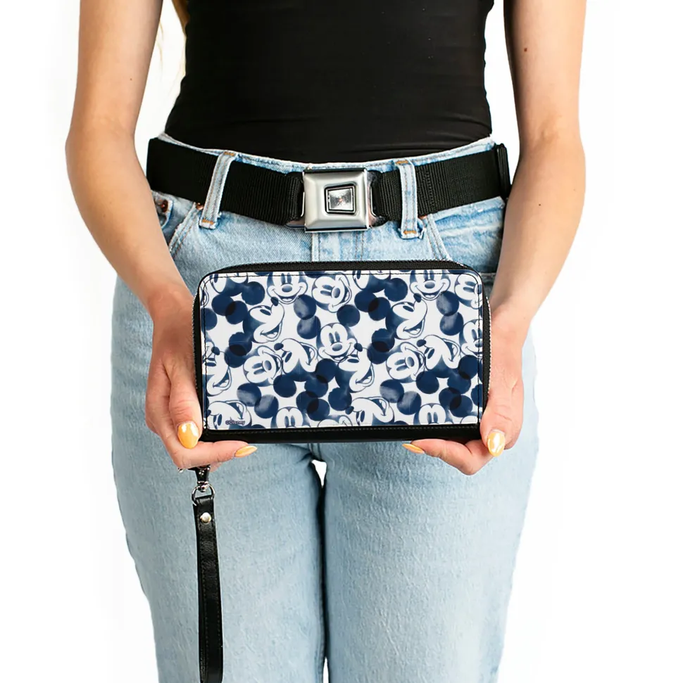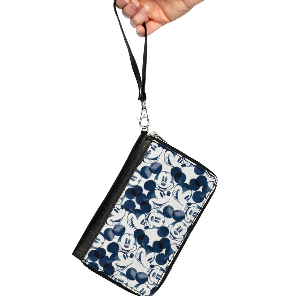 Women's PU Zip Around Wallet Rectangle – Mickey Mouse Expression Impressions Stacked Blues
