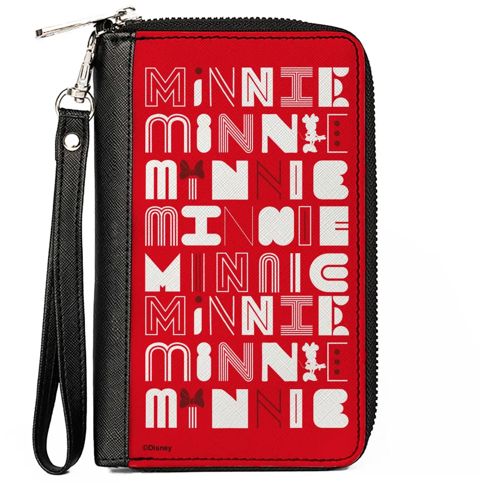 Women's PU Zip Around Wallet Rectangle – Minnie Mouse MINNIE Typography Red White
