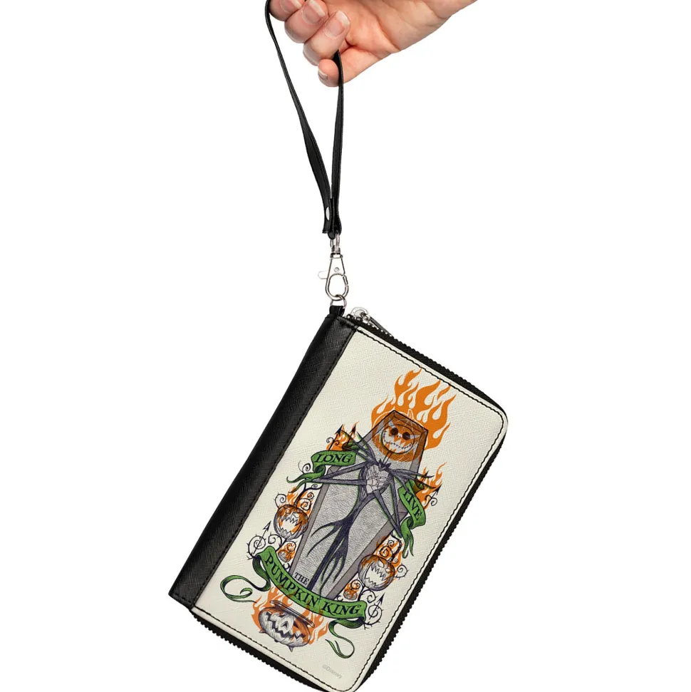 Women's PU Zip Around Wallet Rectangle – Nightmare Before Christmas LONG LIVE THE PUMPKIN KING Jack Corpse Pose Ivory Grays Orange Green