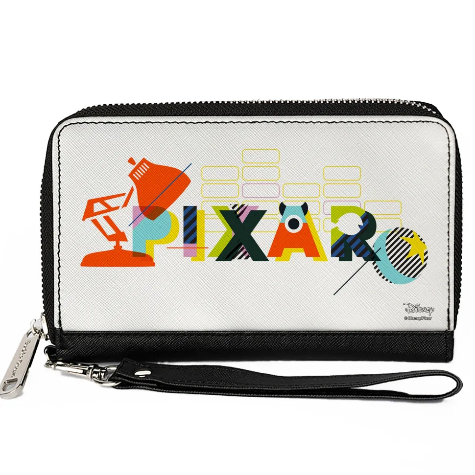 Women's PU Zip Around Wallet Rectangle - PIXAR Luxo Lamp and Ball Striping White Multi Color