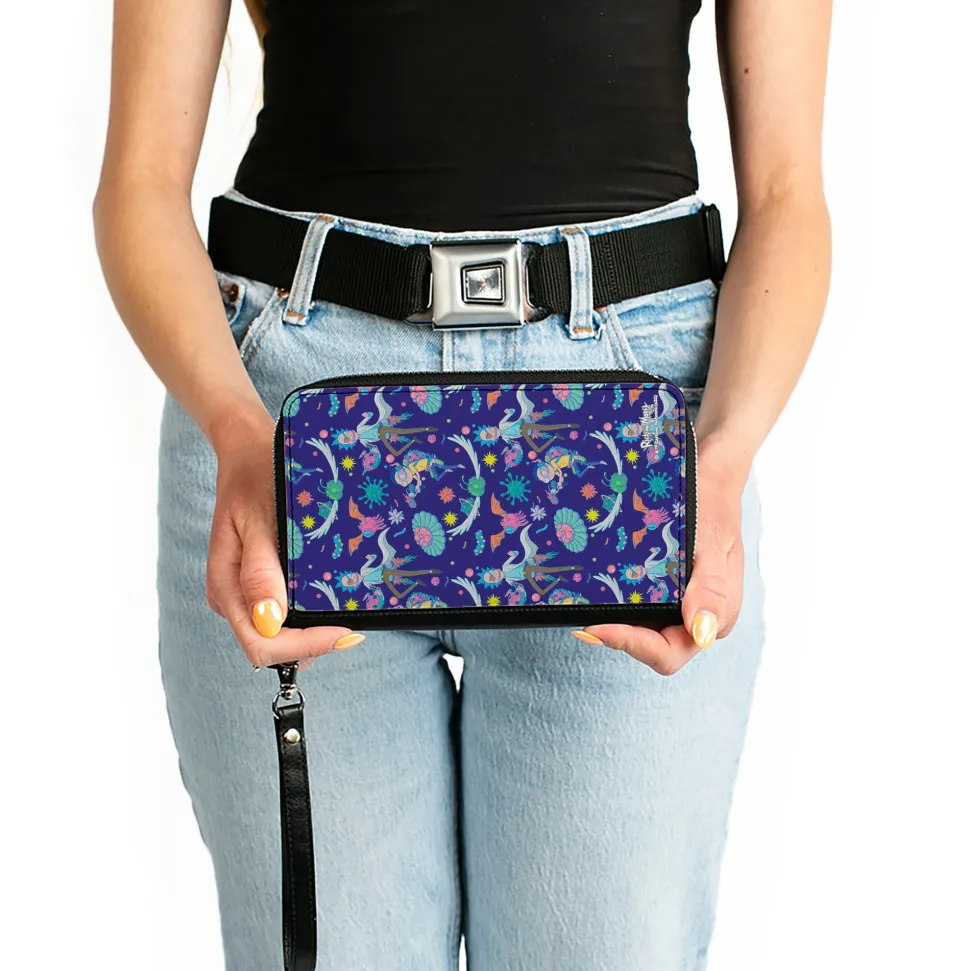 Women's PU Zip Around Wallet Rectangle – Rick and Morty Aliens and Cells Portal Gun Collage Purple