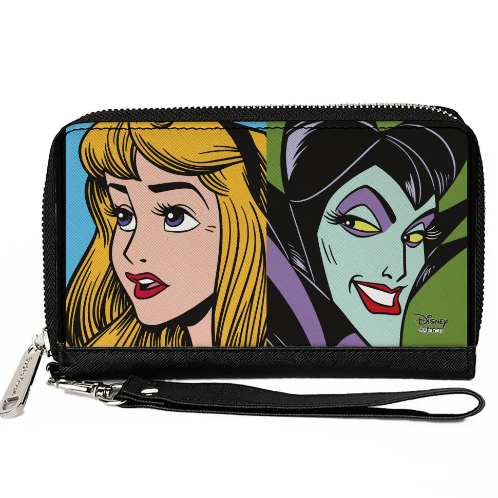 Women's PU Zip Around Wallet Rectangle – Sleeping Beauty Princess Aurora and Maleficent Face Blocks