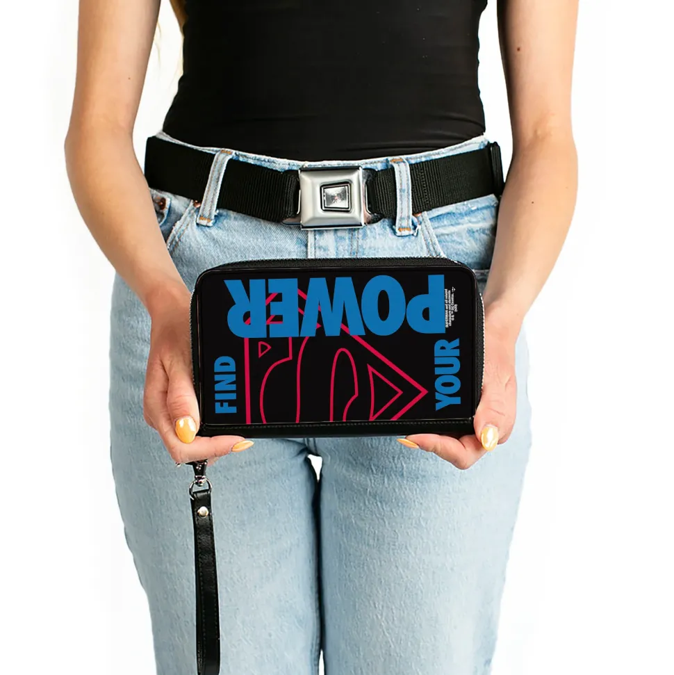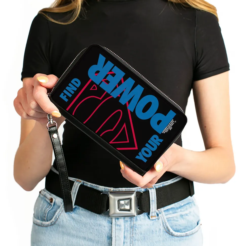 Women's PU Zip Around Wallet Rectangle - Superman Shield FIND YOUR POWER Black Red Blue