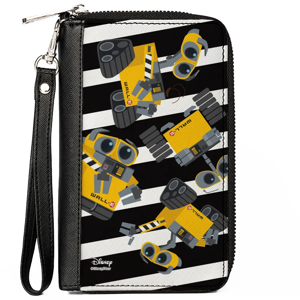 Women's PU Zip Around Wallet Rectangle - WALL-E Poses Scattered Stripe Black White
