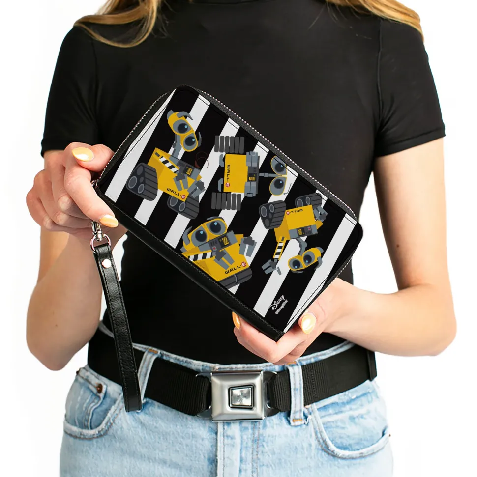 Women's PU Zip Around Wallet Rectangle – WALL-E Poses Scattered Stripe Black White