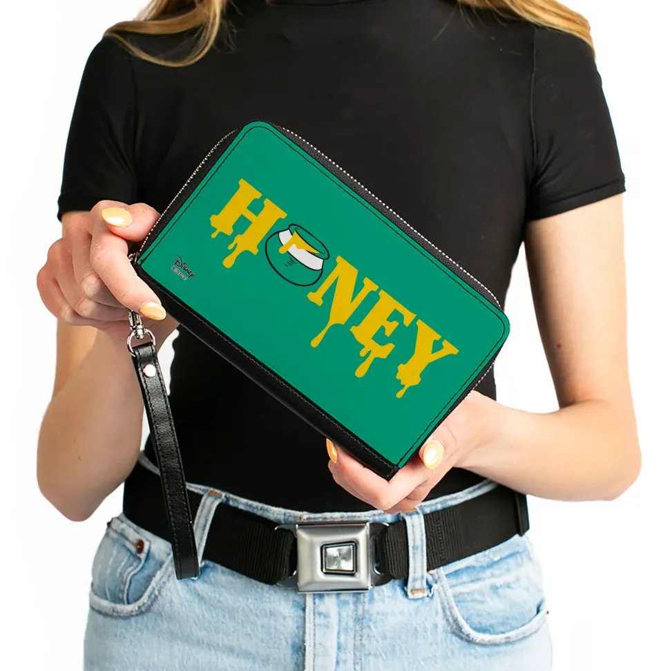 Women's PU Zip Around Wallet Rectangle - Winnie the Pooh Dripping HONEY Green Yellow