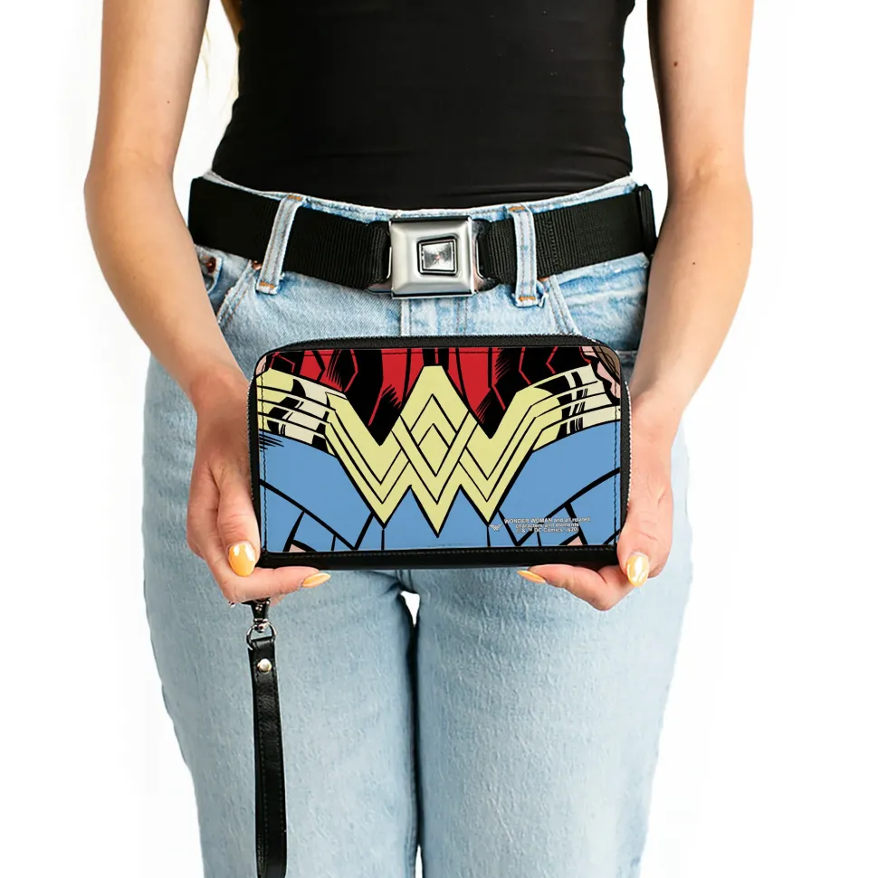 You’re going to love this wallet! Stylish and sleek this zip around wallet is made from premium vegan leather. It measures 7.5×4.5×1.0 Inches and features 2 billfolds, 6 card slots, 1 coin zipper, 1 windowed ID holder slot and a detachable wristlet strap for easy carrying. This wallet is spacious enough to carry large smartphones such as the iPhone 8 Plus, iPhone 11 Max. Galaxy Note 10 Plus and more! The gorgeous artwork is applied using the latest printing technology so it will hold up well over time. This product is Made in USA by Buckle-Down Inc. and Officially Licensed by DC Comics.