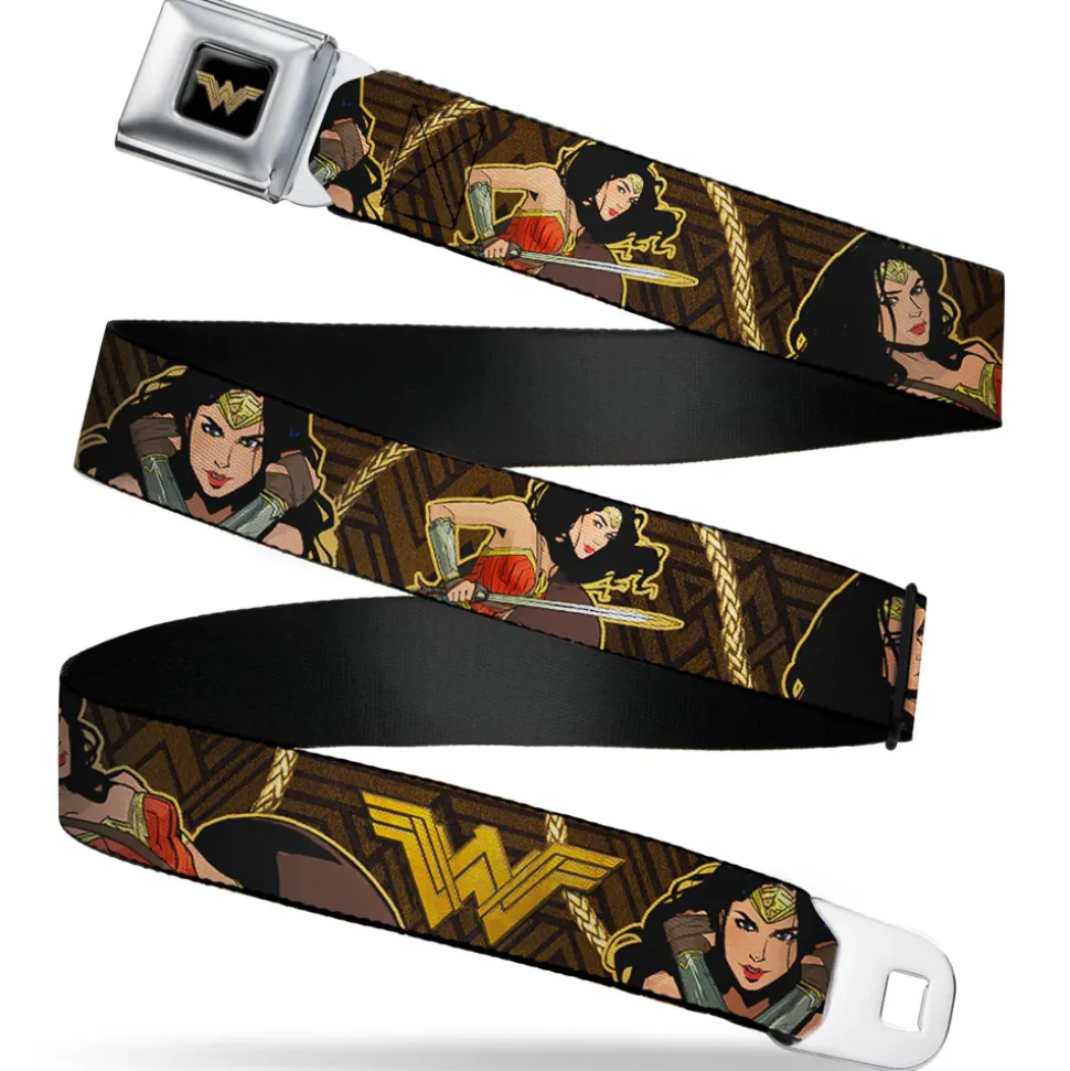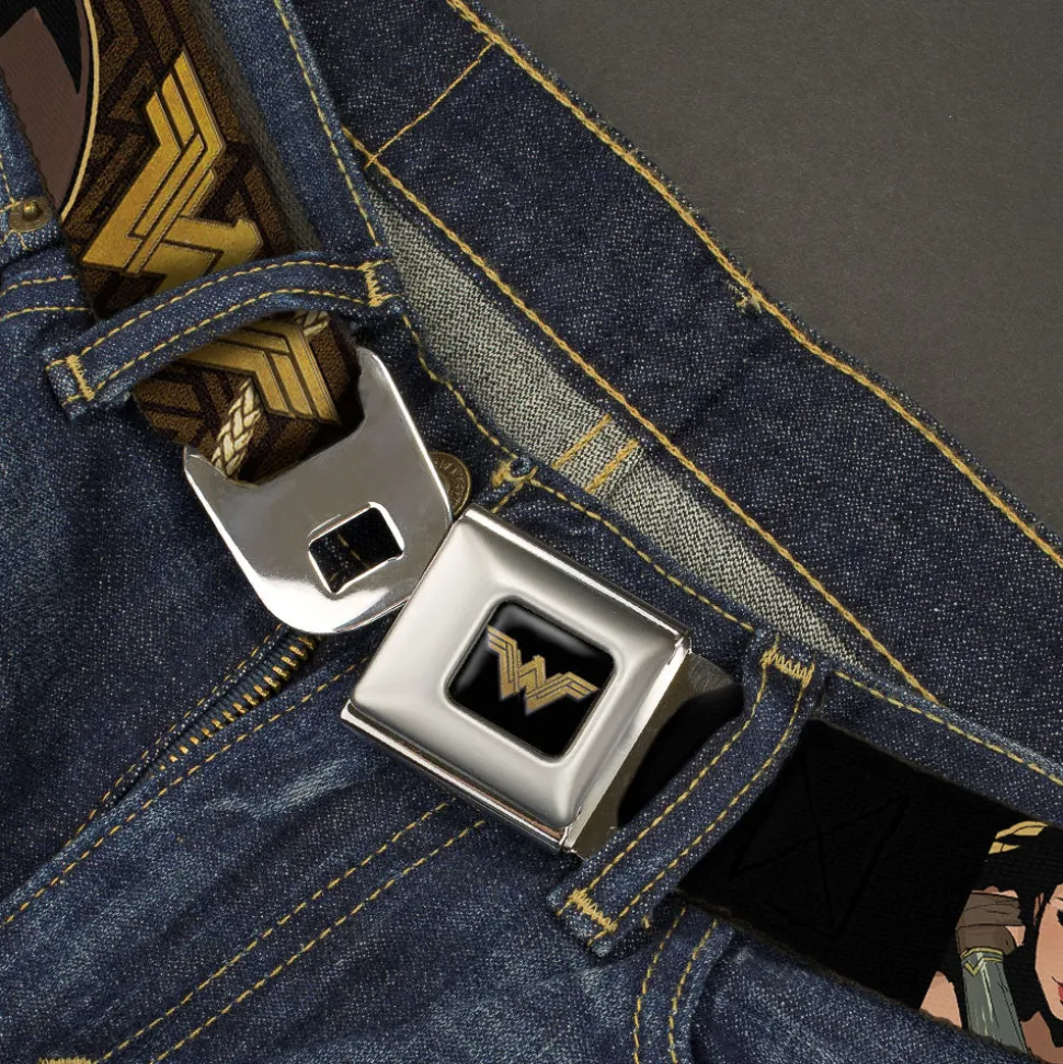 Wonder Woman 2017 Icon Full Color Black/Gold Seatbelt Belt – Wonder Woman 2017 Icon/3-Poses/Lasso of Truth Black/Brown/Golds Webbing