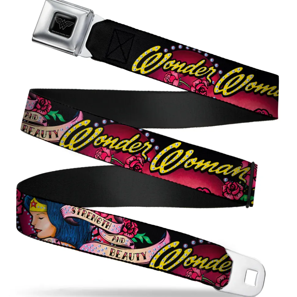 Wonder Woman Black Silver Seatbelt Belt – WONDER WOMAN/Roses STRENGTH AND BEAUTY Black-Pink Fade Webbing