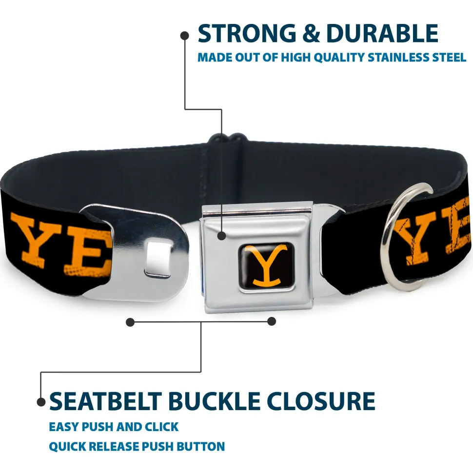 Yellowstone Y Logo Full Color Black/Orange Seatbelt Buckle Collar – YELLOWSTONE Text and Y Logo Weathered Black/Orange